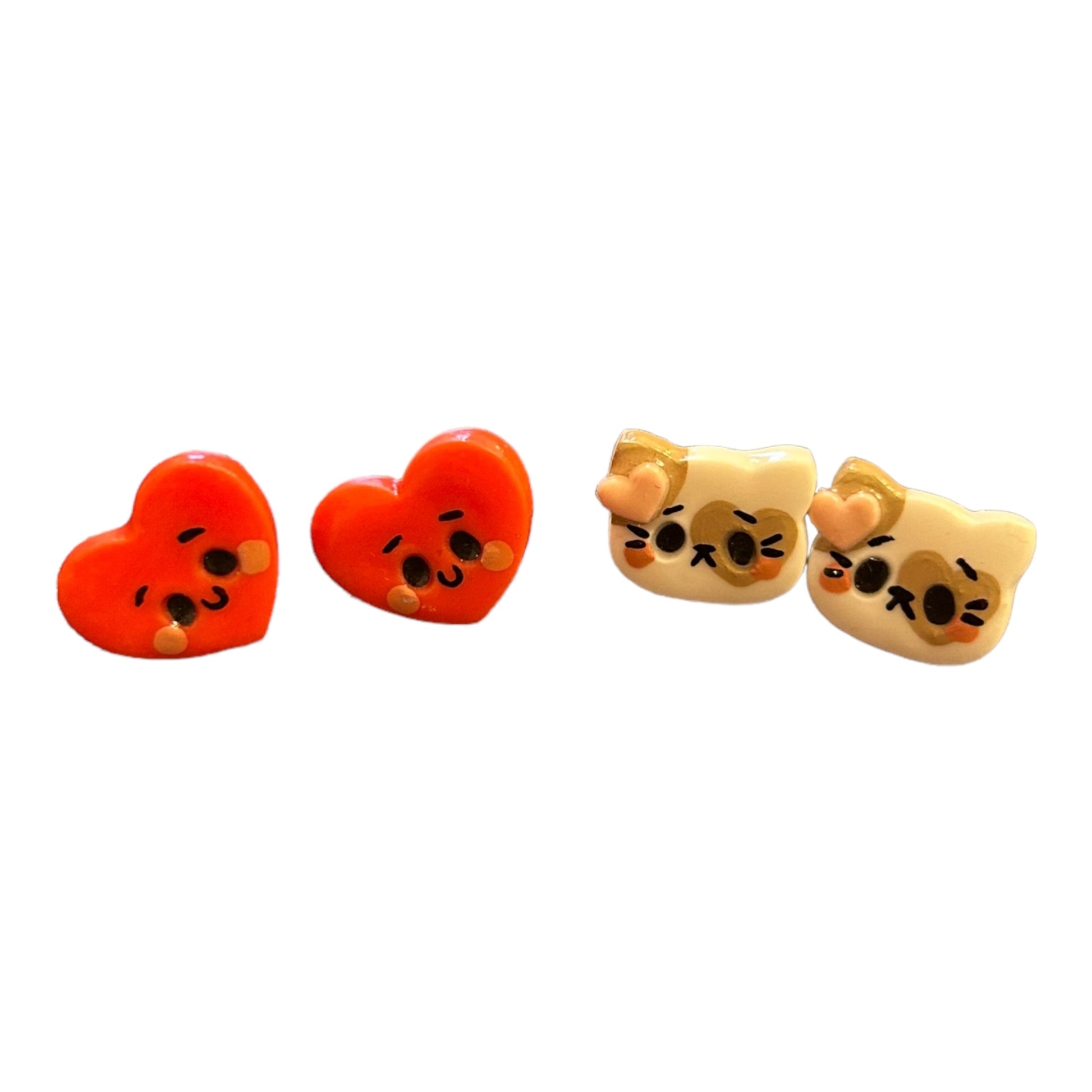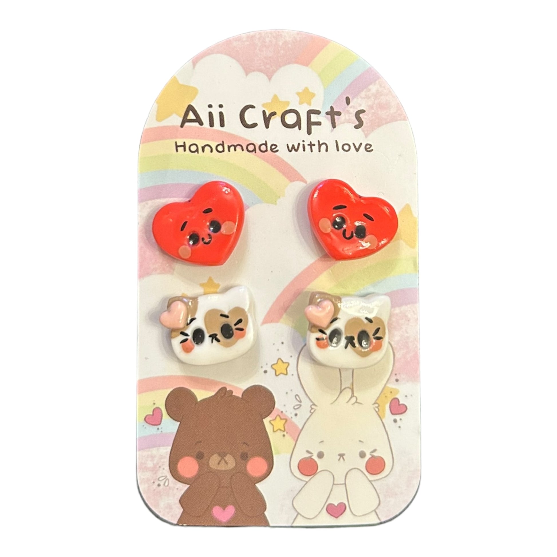 Aii Craft Handmade Cat and heart 2 pack stud earrings
