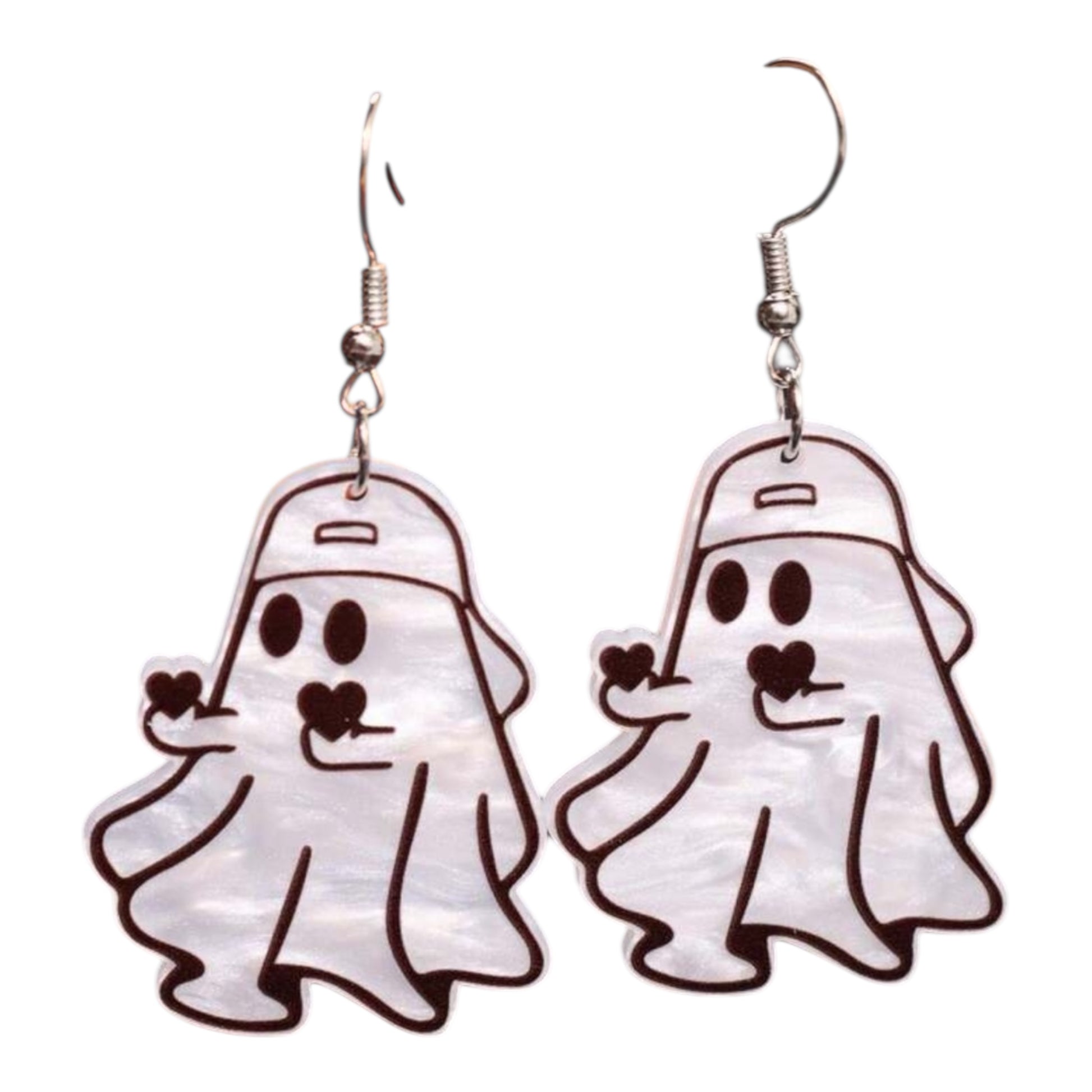 Add a playful touch to your outfit with these Handing Heart Ghost Earrings! Featuring an adorable ghost holding a heart and sporting a backwards hat, these 1.5" x 1" earrings are perfect to show your love. Get ready to receive compliments!